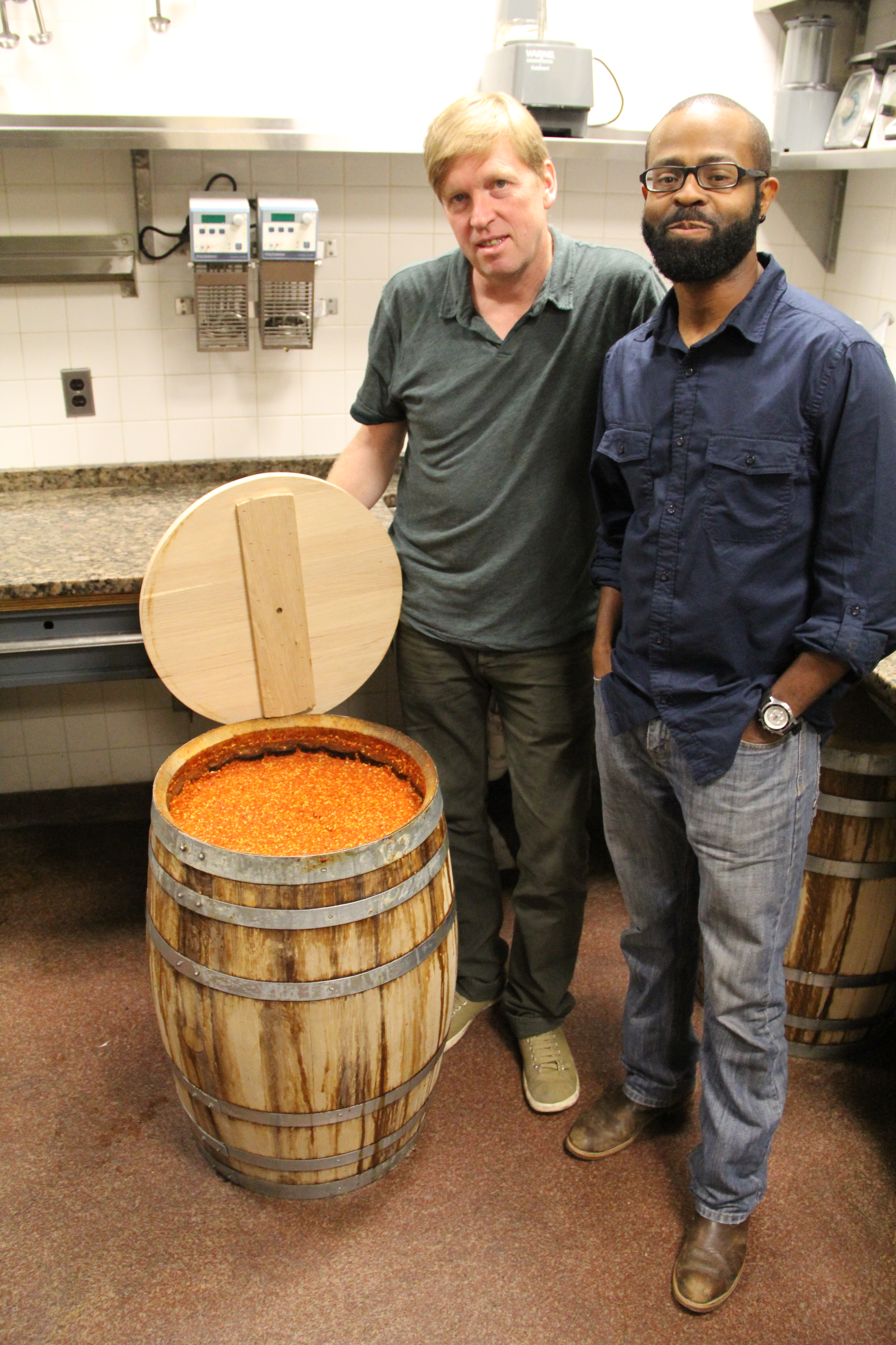 Spike and Denzel with Fish Pepper Hot Sauce in the making!