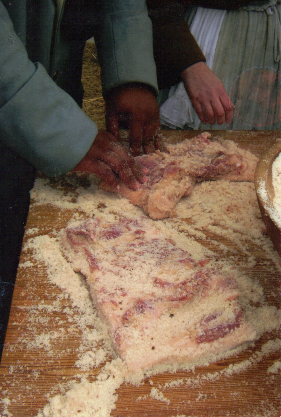 It’s not all about the past you know–its standing in the kitchen of the Lee ancestral home, Stratford Hall and having guests laugh at you when you’ve spilled some water on the hearth….and you can tell its not a nice laugh…You’ve been on your feet for hours, you’ve built the fire, you’re exhausted, you’ve carried 60 pound pots…and you have a table full of things you’ve cooked and you feel embarrassed and the people who are watching you seem remarkably unsympathetic even mocking–as if they—could do this–day after day after day–
