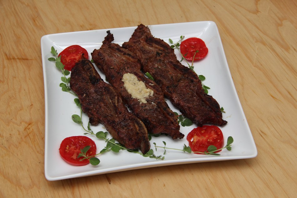 —If you want–use the sprigs of fresh parsley, marjoram, and chives to garnish or to mellow with the flanken ribs as they rest in the foil.