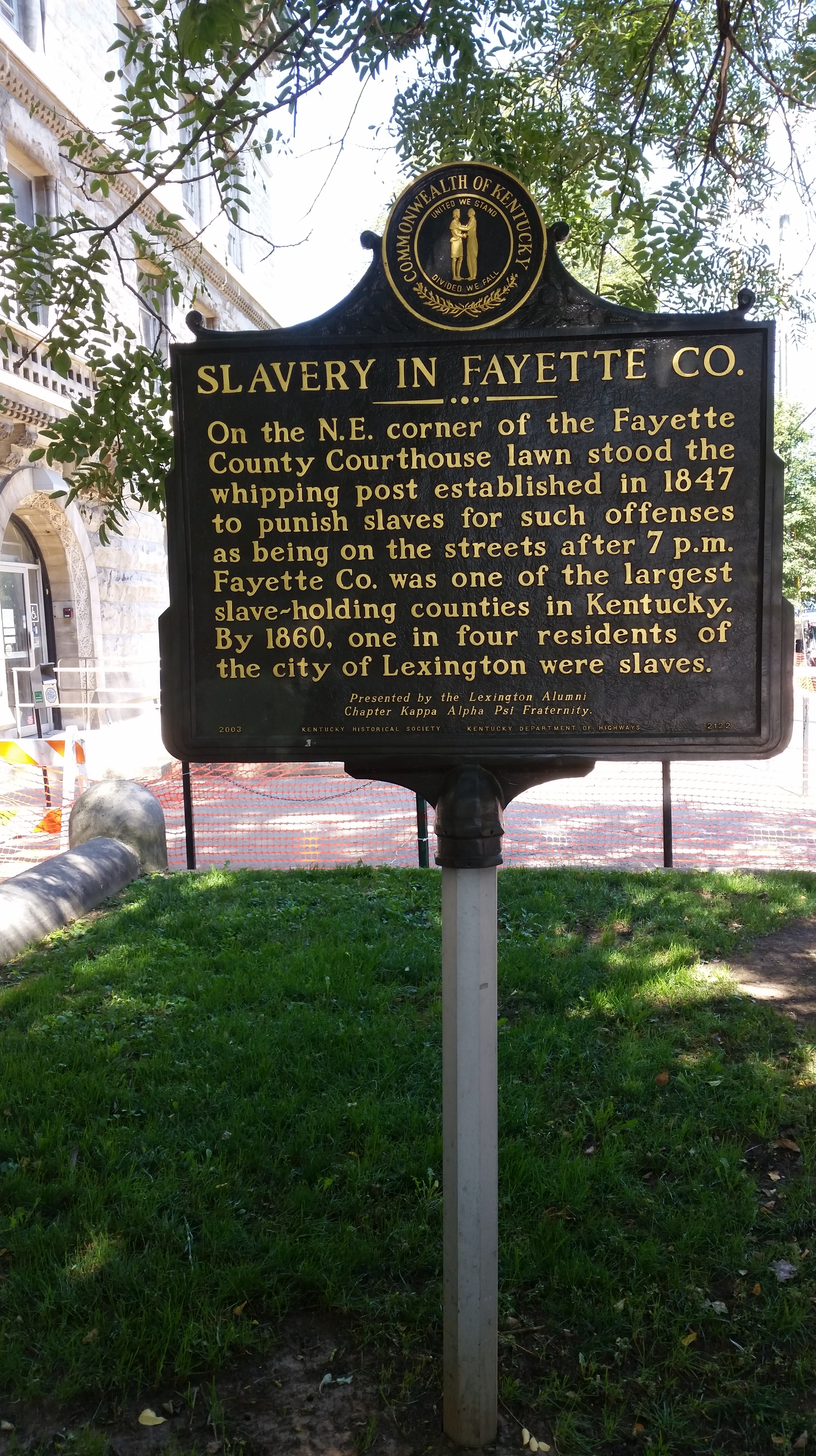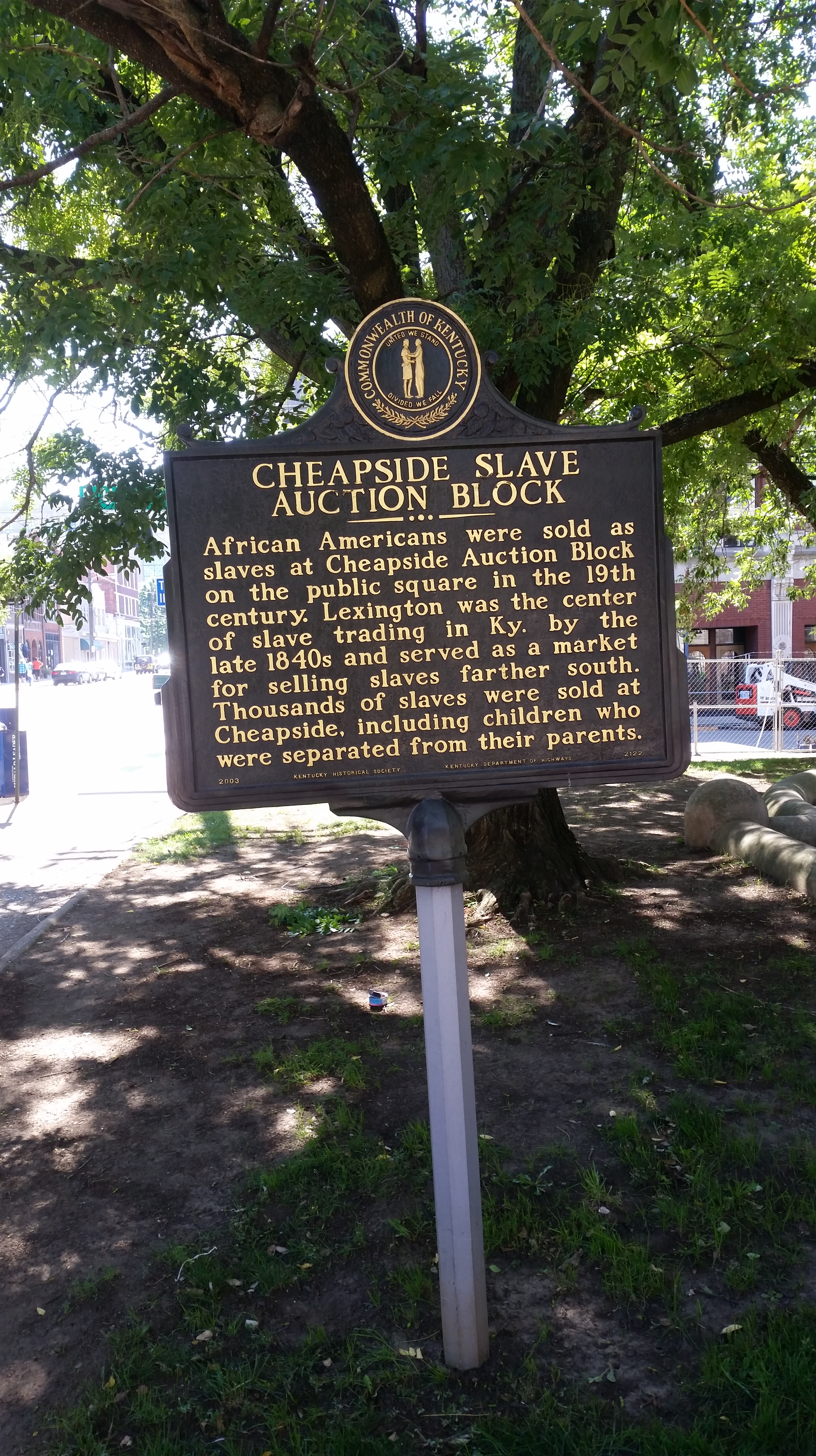 The countryside between Louisville and Lexington was one of the heartlands of Kentucky slavery. At the auction spot near the Fayette County courthouse, numerous enslaved cooks were sold including two “likely” women in 1864, both noted as talented cooks. Today, where enslaved people once waited to be sold “down the river,” the Farmer’s Market now stands.