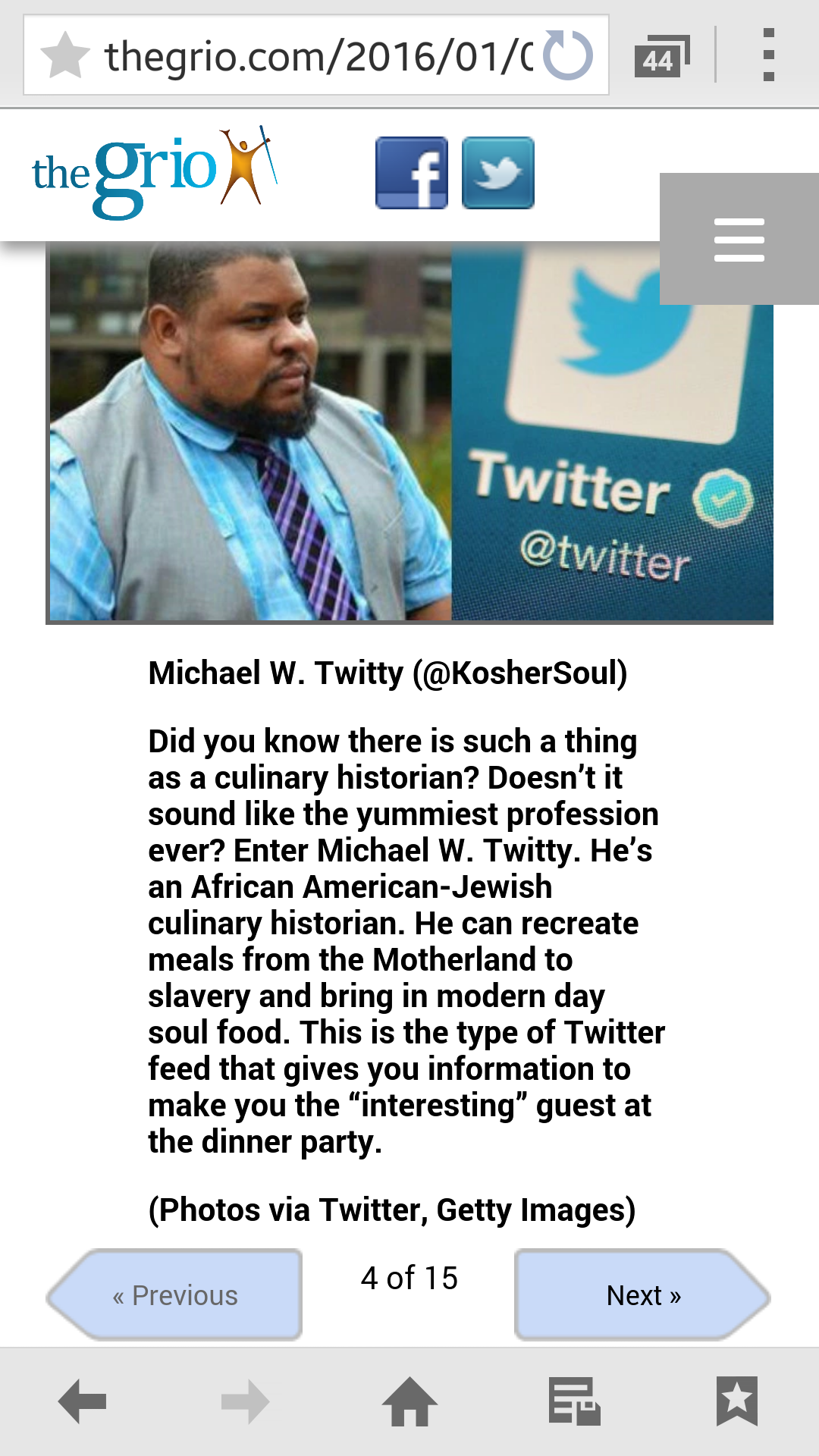 Follow me on Twitter @koshersoul and on Facebook as Michael W. Twitty.